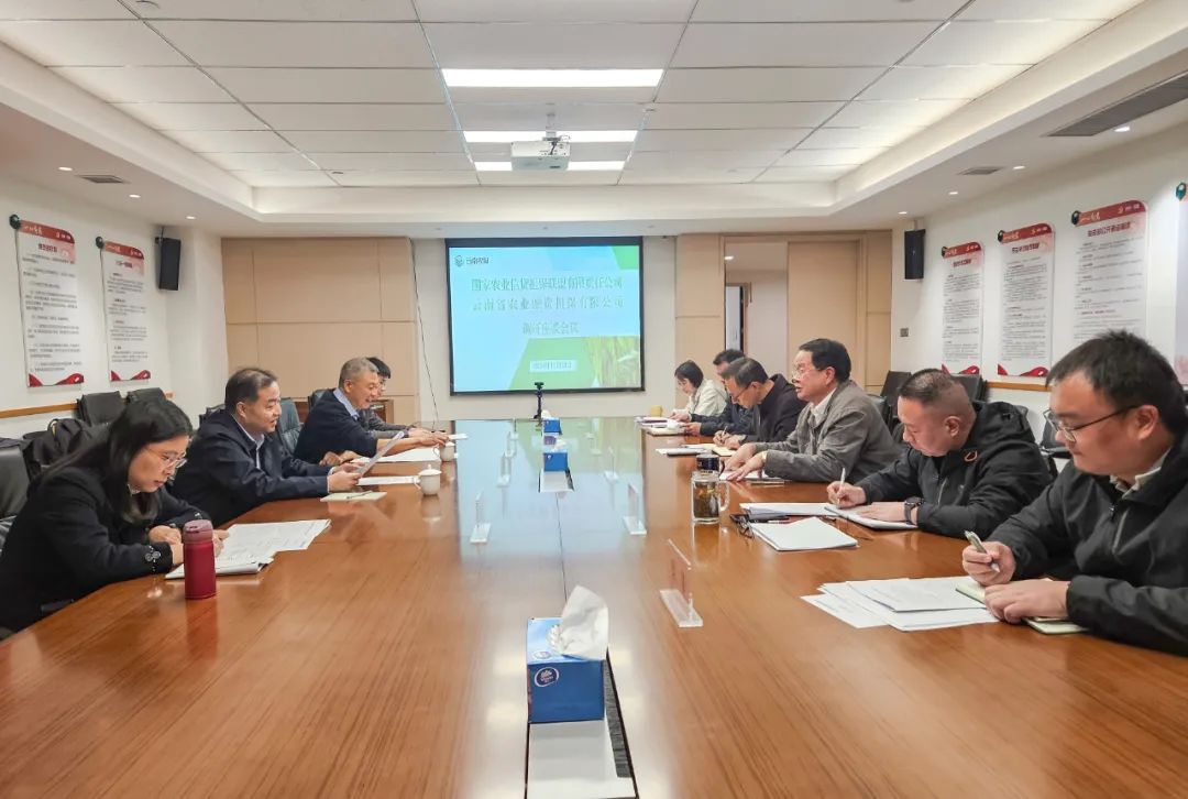 2024年11月11日,國家農(nóng)業(yè)信貸擔(dān)保聯(lián)盟有限責(zé)任公司黨委委員、專職董事時以群,副總經(jīng)理楊春光率有關(guān)部門負責(zé)人赴云南開展業(yè)務(wù)發(fā)展及風(fēng)險防控專項調(diào)研。云南農(nóng)擔(dān)公司董事長杜開波、總經(jīng)理李世偉、副總經(jīng)理廖寅皓率業(yè)務(wù)發(fā)展部、風(fēng)險控制部、資產(chǎn)保全部負責(zé)人參加座談會。