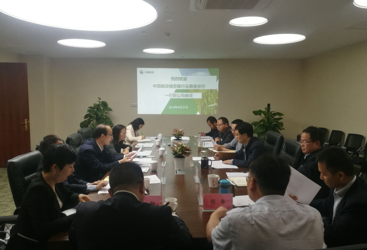 2018年4月27日,中國(guó)郵政儲(chǔ)蓄銀行云南省分行孟浩副行長(zhǎng)一行到省農(nóng)擔(dān)公司座談,公司郭影董事長(zhǎng)、杜開(kāi)波總經(jīng)理、廖寅皓副總經(jīng)理及各部門(mén)負(fù)責(zé)人出席會(huì)議,雙方就下一步展開(kāi)深度合作展開(kāi)座談。