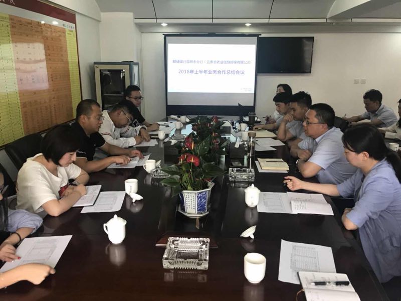 7月5日下午農擔公司二部負責人賈萬文攜尋甸辦事處工作人員前往郵政儲蓄銀行昆明市分行(以下簡稱昆明郵儲)就上半年工作回顧及下半年工作計劃舉行深入座談。郵政儲蓄銀行安寧市分行馬青行長、昆明市西山區(qū)支行董云紅行長、洪瑋副行長、昆明市盤龍區(qū)支行孫晏行長、宜良縣支行李啟江行長、三農金融事業(yè)部負責人王麗等人參與本次會議。
