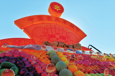 9月23日,首屆中國農民豐收節(jié)主會場慶典現(xiàn)場,優(yōu)質農產品組成的巨型花壇果香色艷,展示著農業(yè)綠色發(fā)展成就。