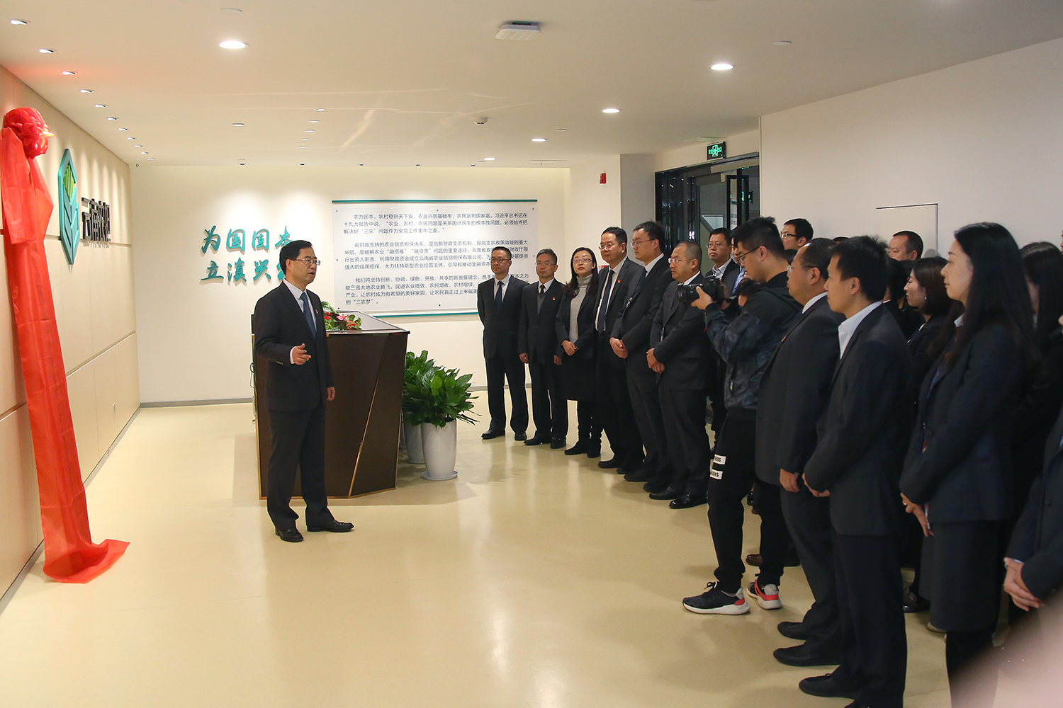 2018年10月10日上午11時(shí),云南省農(nóng)業(yè)信貸擔(dān)保有限公司舉行搬遷儀式,公司董事長(zhǎng)郭影、總經(jīng)理杜開波和員工一起進(jìn)行了新址揭牌儀式。