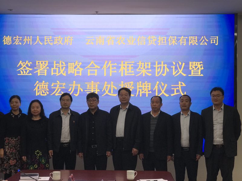 在各位領導的見證下,郭影董事長與德宏州人民政府、各縣市政府簽署戰(zhàn)略合作框架協(xié)議。協(xié)議簽署完畢后,馬云峰常務副州長、郭影董事長共同為農擔公司德宏辦事處授牌。授牌儀式結束后農擔公司與各縣市政府、相關金融機構開展座談交流。
