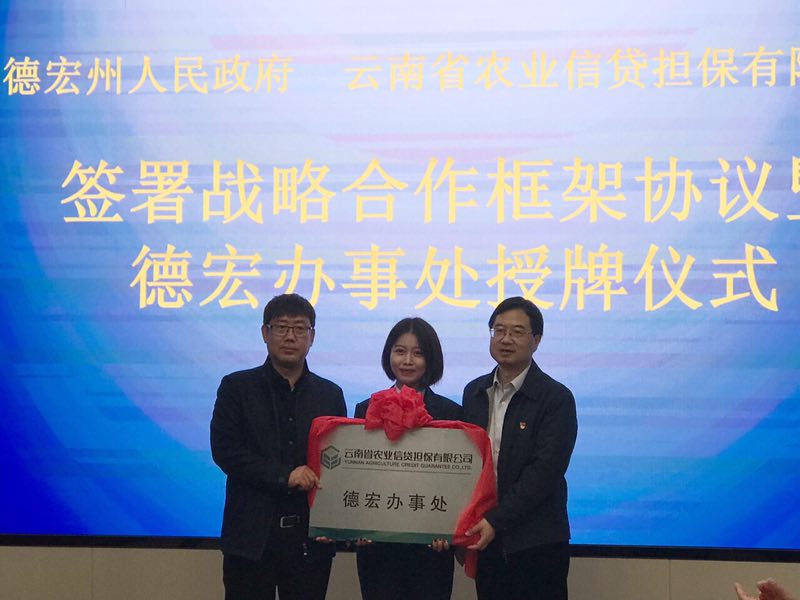 12月19日上午,德宏州人民政府、云南農擔公司簽署戰(zhàn)略合作框架協(xié)議暨德宏辦事處授牌儀式在芒市會堂舉行。德宏州委常委、常務副州長馬云峰,農擔公司董事長郭影、總經理杜開波、機構部負責人蔡菲、德宏州財政局、農業(yè)局、人行德宏支行、德宏銀監(jiān)分局、農行德宏分行、省聯(lián)社德宏辦、各縣市政府等相關單位參加會議。