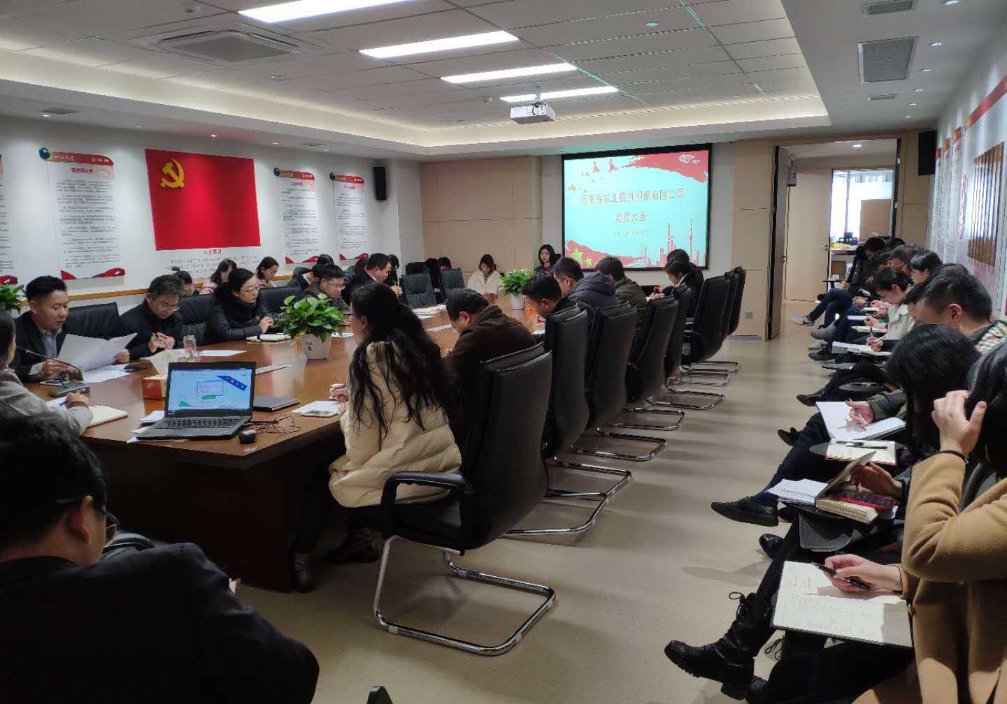 1月2日,2019年上班第一天,云南省農(nóng)業(yè)信貸擔(dān)保有限公司(以下簡稱“云南農(nóng)擔(dān)”)召開黨員大會(huì),開展黨員職工作風(fēng)紀(jì)律建設(shè)專題警示教育活動(dòng),公司全體員工參加了活動(dòng)。活動(dòng)主要內(nèi)容有傳達(dá)學(xué)習(xí)財(cái)政廳紀(jì)檢工作會(huì)議精神、財(cái)政廳機(jī)關(guān)紀(jì)委《關(guān)于2019年元旦、春節(jié)期間加強(qiáng)紀(jì)律建設(shè)的通知》,報(bào)告2018年公司黨風(fēng)廉政建設(shè)工作情況及2019年工作打算,以及對(duì)全體黨員職工提出2019年黨風(fēng)廉政建設(shè)工作要求。