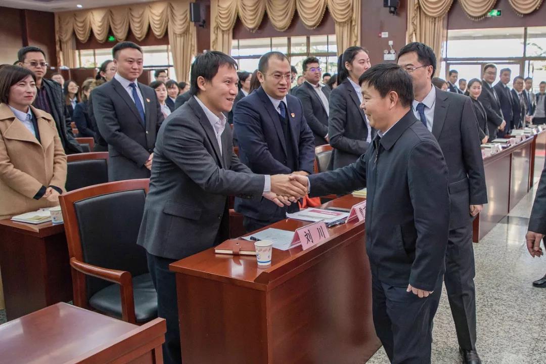 張巖松廳長(zhǎng)與省農(nóng)擔(dān)公司優(yōu)秀員工親切握手
