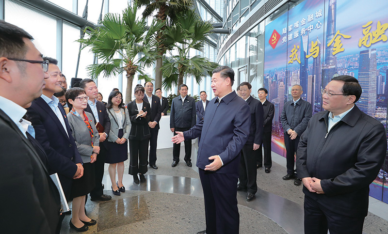 2018年11月6日至7日,中共中央總書記、國家主席、中央軍委主席習近平在上??疾?。這是6日上午,習近平在上海中心大廈22層的陸家嘴金融城黨建服務中心,同正在聯(lián)合開展主題黨日活動的企業(yè)黨員親切交談。