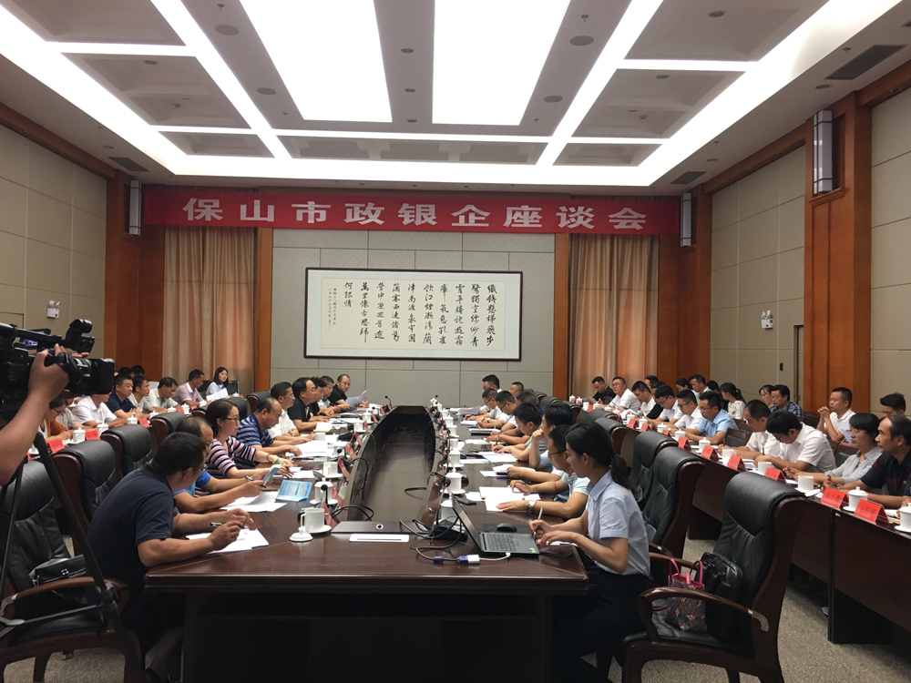 7月3日,為搭建金融機構(gòu)與中小微企業(yè)融資合作平臺,加快構(gòu)建政府信用融資擔保體系和貸款風險補償機制,充分發(fā)揮財政資金“四兩撥千斤”的撬動作用,引導更多金融資本流向中小微企業(yè),在保山市工商聯(lián)及我司保山辦事處共同組織下 ,2019年保山市政銀企座談會在永昌會堂舉行。保山市工商聯(lián)、市財政局(市金融辦)、市農(nóng)業(yè)農(nóng)村局、市供銷社、人民銀行保山市中心支行、銀保監(jiān)會保山監(jiān)管分局、中國工商銀行保山市分行、中國農(nóng)業(yè)銀行保山市分行等10家金融機構(gòu),有融資需求或意向的35家農(nóng)業(yè)經(jīng)營主體、合作社、民營企業(yè)代表,13家商(協(xié))會負責人共計80余人參會。云南省農(nóng)擔二部負責人賈萬文同志攜保山辦事處業(yè)務主管胡幫露及辦事處人員一同出席會議。