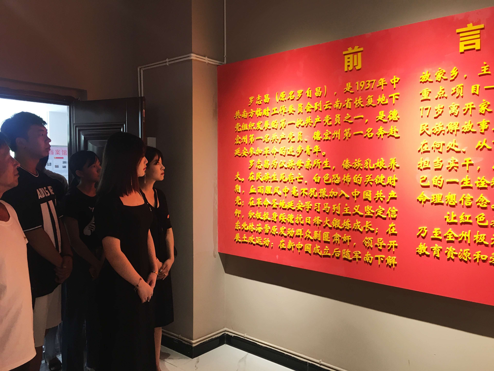 活動(dòng)中,全體黨員干部在胡幫露同志的帶領(lǐng)下重溫入黨誓詞。在講解員的引導(dǎo)和解說(shuō)下,參觀學(xué)習(xí)了羅志昌革命史實(shí)陳列室,了解了黨在德宏州的發(fā)展歷史、并從“和諧家庭,少年立志”、“求學(xué)上進(jìn),秘密入黨”、“延安深造、綏德成長(zhǎng)”、“云南解放回鄉(xiāng)建設(shè)”四方面學(xué)習(xí)了羅志昌同志一生為黨和人民解放事業(yè)奮斗的事跡。