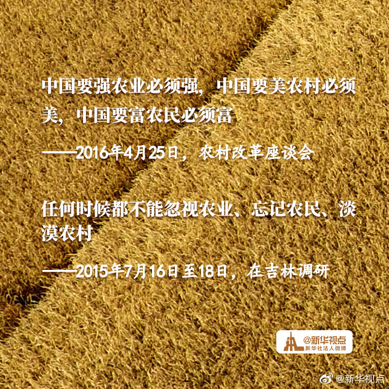 “農(nóng)業(yè)農(nóng)村工作,說一千、道一萬,增加農(nóng)民收入是關(guān)鍵”“中國要強(qiáng)農(nóng)業(yè)必須強(qiáng),中國要美農(nóng)村必須美,中國要富農(nóng)民必須富”……黨的十八大以來,以習(xí)近平同志為核心的黨中央關(guān)注農(nóng)業(yè)、關(guān)心農(nóng)村、關(guān)愛農(nóng)民,一起來學(xué)習(xí)總書記的金句?
