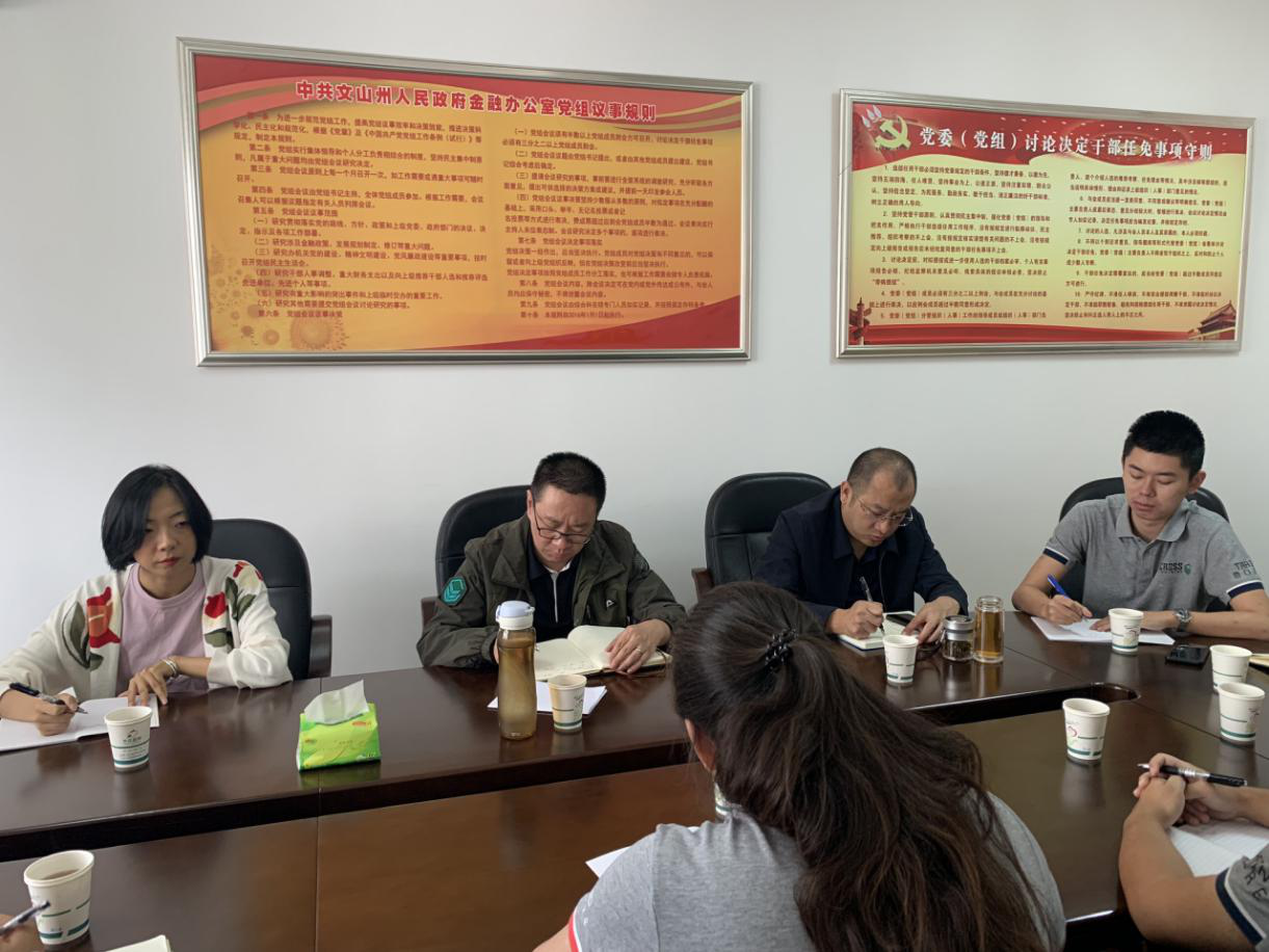 2019年9月25日,值新中國(guó)成立70周年之際,省農(nóng)擔(dān)公司副總經(jīng)理廖寅皓攜農(nóng)擔(dān)二部負(fù)責(zé)人賈萬(wàn)文走訪文山辦事處,與文山辦事處工作人員展開(kāi)座談。文山辦事處全體工作人員及駐點(diǎn)文山辦事處開(kāi)展審計(jì)工作的審計(jì)監(jiān)察部木琪君、段元英參加座談。