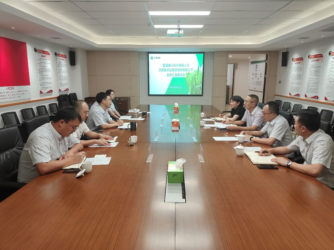 6月16日,云南農(nóng)擔(dān)公司與富滇銀行召開業(yè)務(wù)交流座談會。富滇銀行納然副行長、普惠金融部、昆明國防支行,農(nóng)擔(dān)公司郭影董事長、杜開波總經(jīng)理、風(fēng)險控制部、計劃財務(wù)部、戰(zhàn)略發(fā)展部參加了會議。