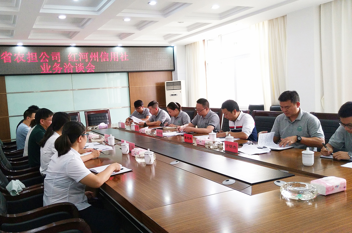 為進(jìn)一步推動(dòng)紅河州的農(nóng)擔(dān)業(yè)務(wù)發(fā)展,加快紅河州農(nóng)信體系與公司的業(yè)務(wù)合作, 8月18日至8月21日,省農(nóng)擔(dān)公司副總經(jīng)理廖寅皓率農(nóng)擔(dān)一部負(fù)責(zé)人寸明杰先后前往省聯(lián)社紅河辦事處、彌勒農(nóng)商行、河口農(nóng)商行、建水農(nóng)商行、石屏農(nóng)信社開(kāi)展業(yè)務(wù)座談,并邀請(qǐng)了昆明市聯(lián)社大客戶(hù)部副總經(jīng)理廖建群一同前往省聯(lián)社紅河辦事處開(kāi)展業(yè)務(wù)座談交流,共同分析紅河州農(nóng)信系統(tǒng)與公司業(yè)務(wù)合作情況、探討存在的問(wèn)題并提出優(yōu)化合作的意見(jiàn)建議。