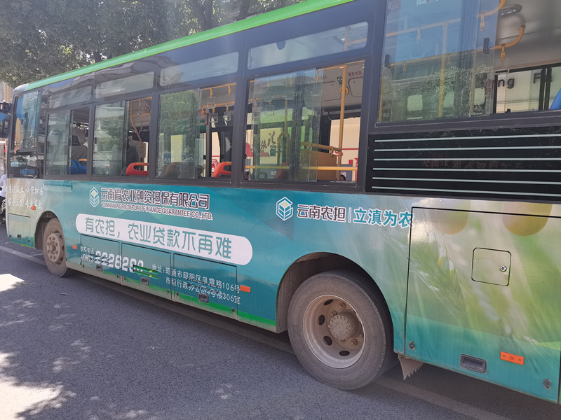 通過利用公交車人流量大,信息傳遞直觀和傳播速度快的特點(diǎn),昭通辦事處在10輛公交車兩側(cè)及車尾張貼醒目的公司宣傳廣告,以“有農(nóng)擔(dān),農(nóng)業(yè)貸款不再難”為宣傳口號(hào),向群眾最直觀地宣傳公司業(yè)務(wù)。
