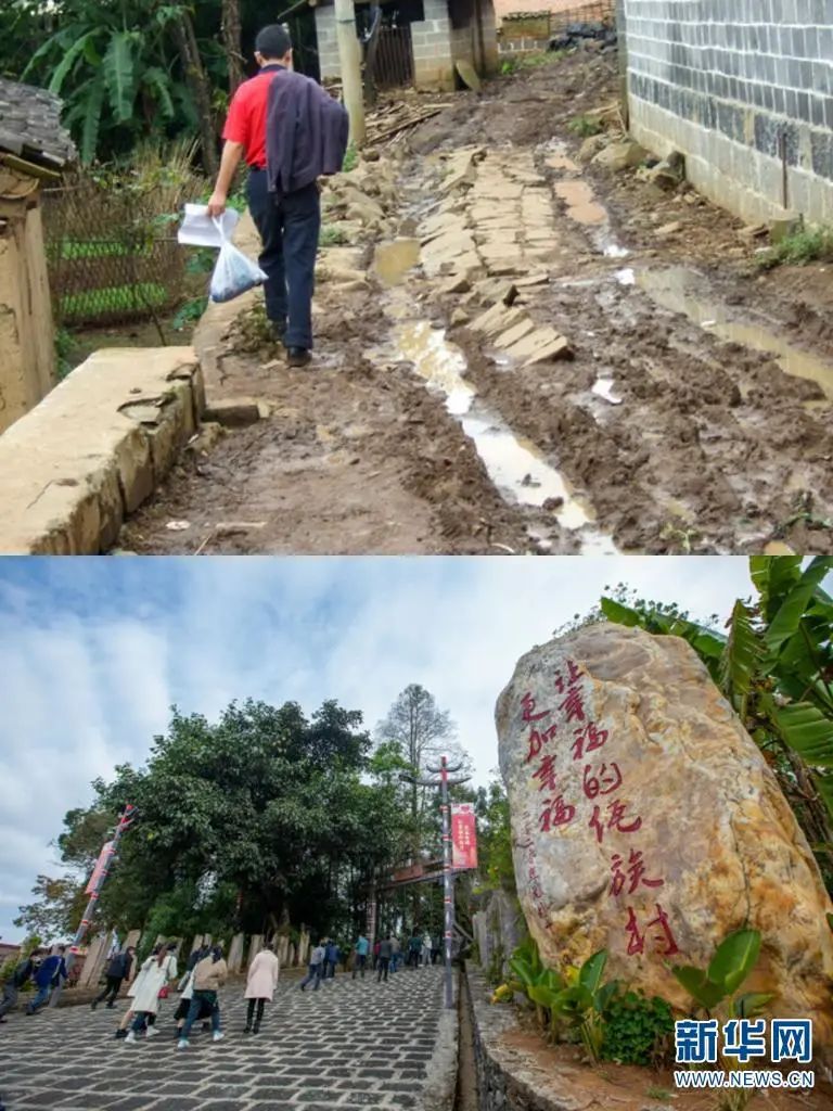上圖為司莫拉曾經(jīng)的村內(nèi)道路(騰沖市清水鄉(xiāng)供圖);下圖為如今的司莫拉進村道路 趙普凡 攝