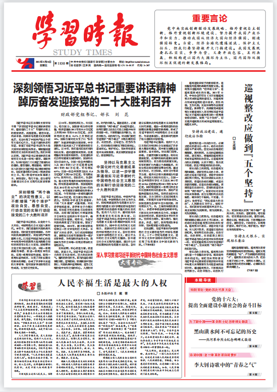 財政部黨組書記、部長劉昆:深刻領(lǐng)悟習近平總書記重要講話精神 踔厲奮發(fā)迎接黨的二十大勝利召開