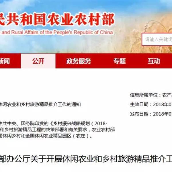 為落實(shí)今年中央一號(hào)文件和中共中央、國(guó)務(wù)院印發(fā)的《鄉(xiāng)村振興戰(zhàn)略規(guī)劃(2018-2022)》關(guān)于實(shí)施休閑農(nóng)業(yè)和鄉(xiāng)村旅游精品工程的決策部署和有關(guān)要求,農(nóng)業(yè)農(nóng)村部決定向社會(huì)推介一批中國(guó)美麗休閑鄉(xiāng)村和全國(guó)休閑農(nóng)業(yè)精品園區(qū)(農(nóng)莊)。現(xiàn)將有關(guān)事項(xiàng)通知如下。