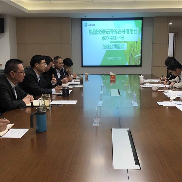 云南省農村信用社聯(lián)合社主任倪立率業(yè)務發(fā)展部、信貸管理部、昆明市農信社到云南農擔公司座談