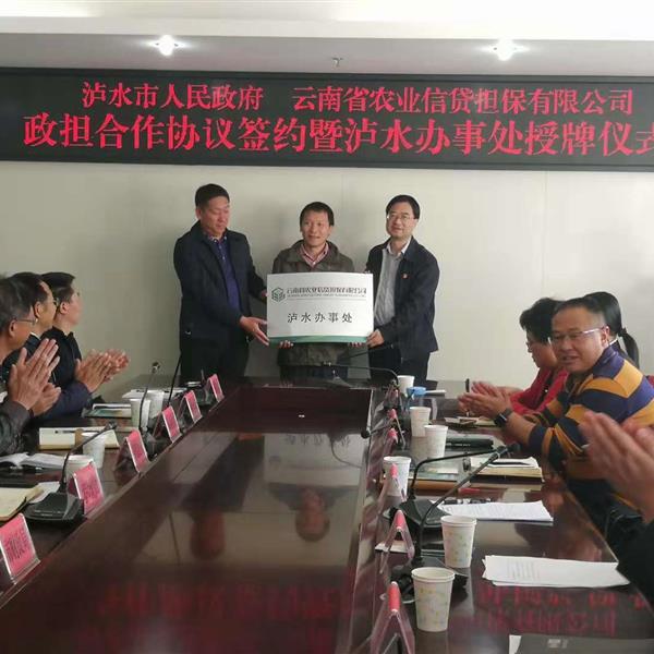 10月24日上午,云南省農業(yè)信貸擔保有限公司瀘水辦事處授牌儀式在瀘水市人民政府舉行。