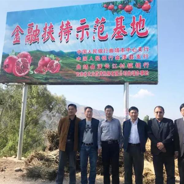 4月12日,農(nóng)擔(dān)公司董事長(zhǎng)郭影與曲靖市財(cái)政局、會(huì)澤人行、會(huì)澤長(zhǎng)江村鎮(zhèn)銀行及其他幾家金融機(jī)構(gòu)領(lǐng)導(dǎo)一行到會(huì)澤縣娜姑鎮(zhèn)干海子軟籽石榴村進(jìn)行實(shí)地考察調(diào)研。